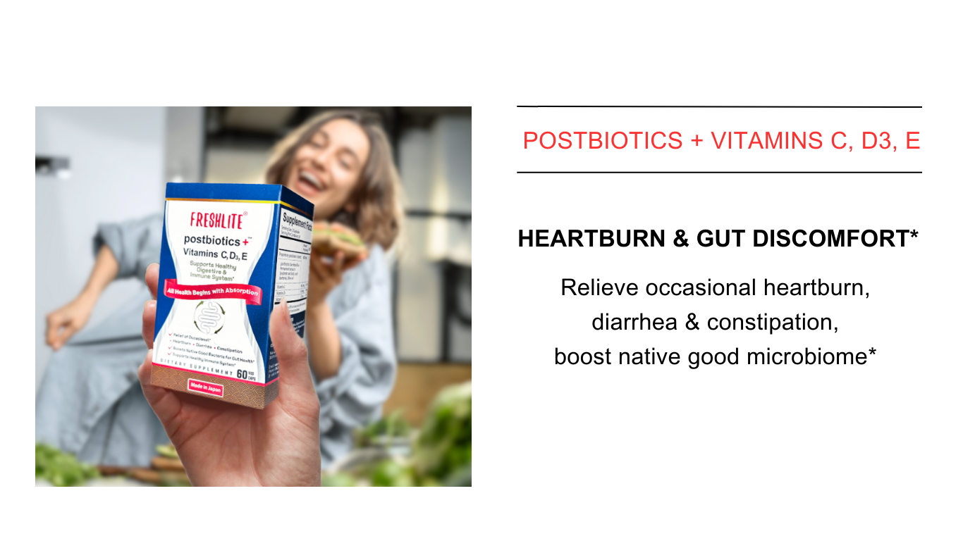 Natural Postbiotics (Fermented extracts from Lacto Rhamnosus, Bifido Adolescentis & Bifido Longum etc) for occasional Heartburn, Constipation and Diarrhea and Digestive Discomfort*